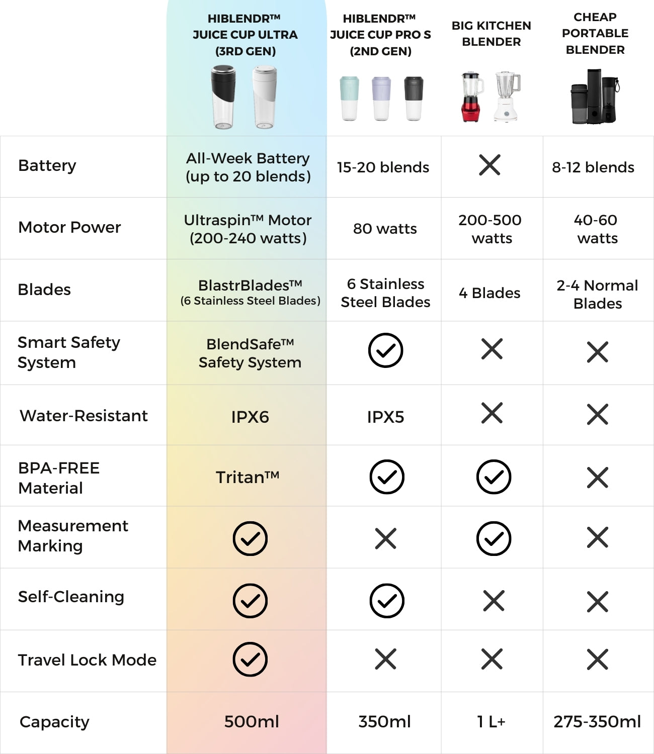 まったく新しい HiBlendr Juice Cup Ultra (第 3 世代) をご紹介します。これは、当社がこれまでに開発した最も先進的なプレミアム ポータブル ブレンダーです。まったく新しい機能とアップグレードされた機能を備えたこのポータブル ブレンダーは、健康的なライフスタイルをこれまで以上にシンプルで使いやすく、美しくします。
